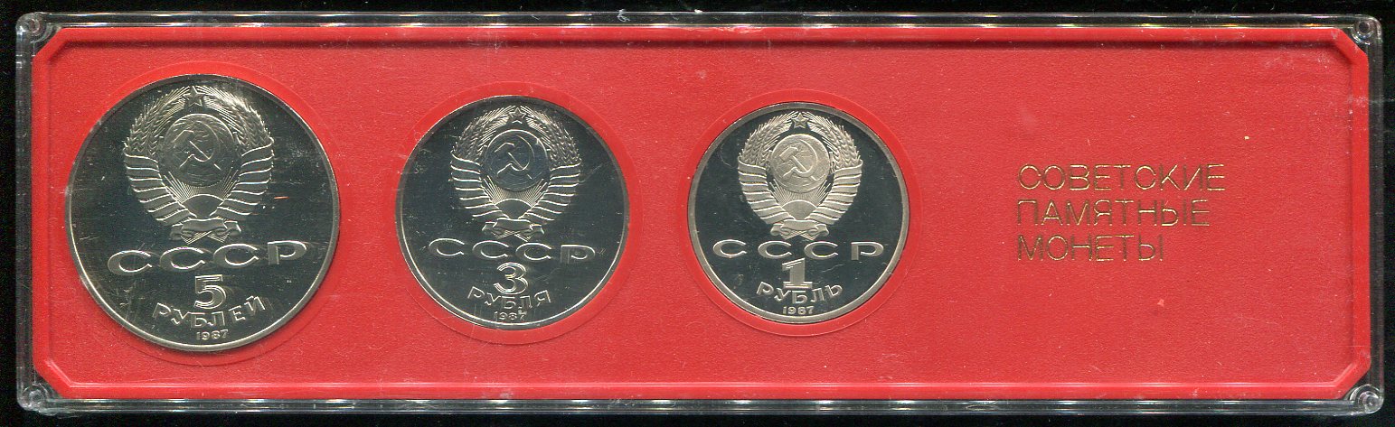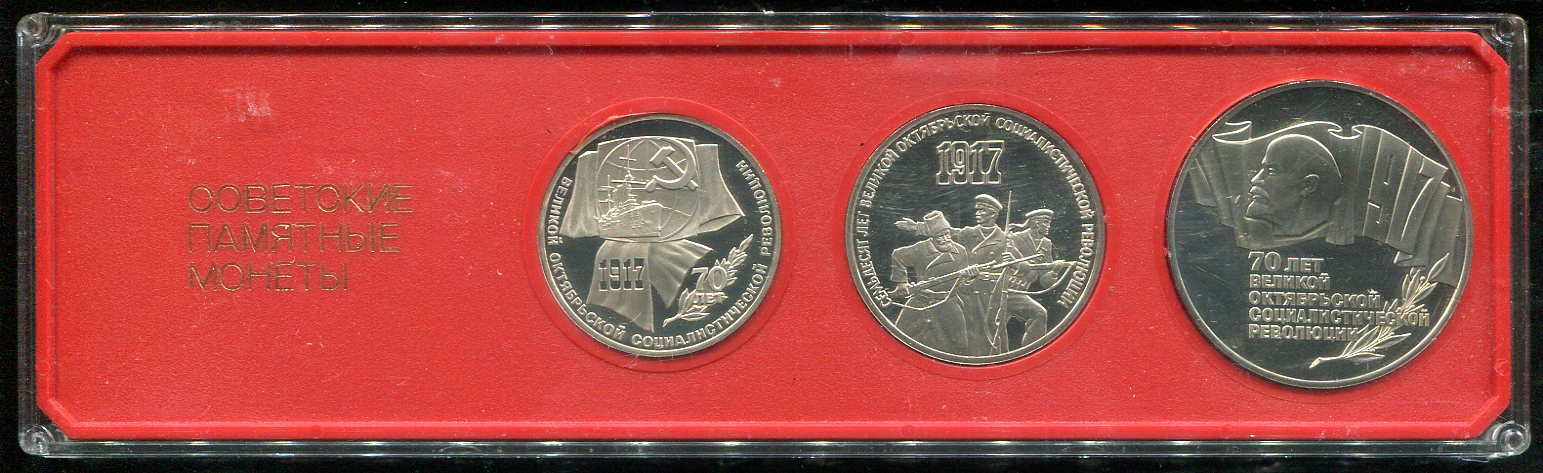 Набор из 3 памятных монет 1987 "70 лет Революции" (в п/у)