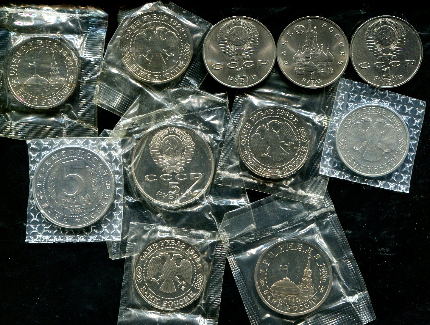 Набор из 11 памятных монет (СССР, РФ) (в запайках)