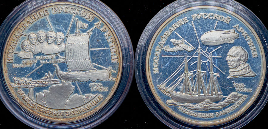 Набор из 2 монет 3 рубля 1995 "Исследование Русской Арктики"