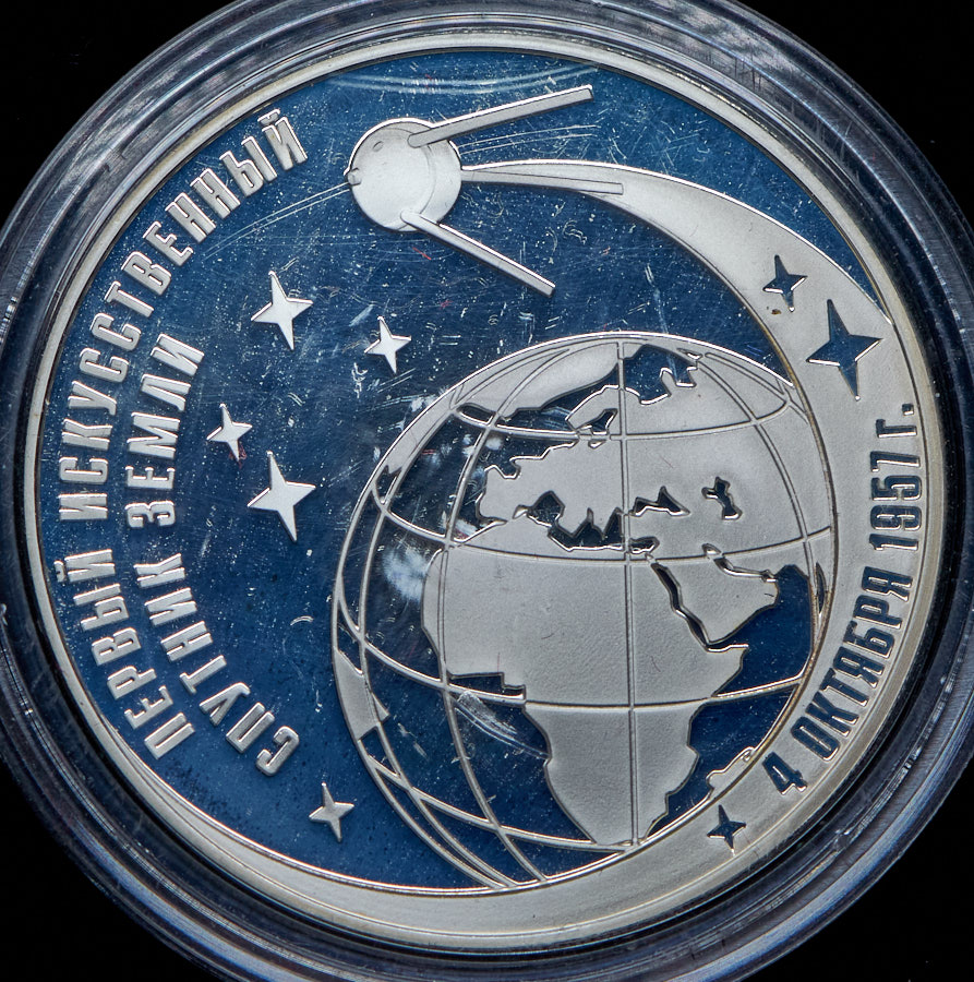 3 рубля 2007 "50-летие запуска первого искусственного спутника Земли" ММД