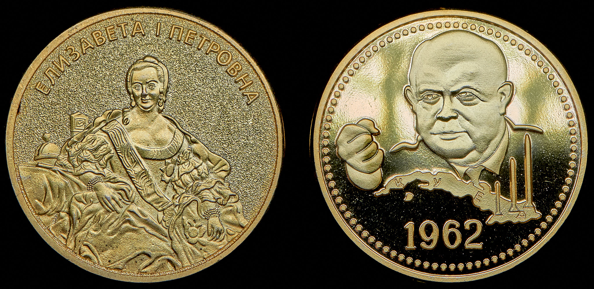Жетон "Один червонец. Великая Россия. Елизавета Петровна". Диаметр - 30 мм.
