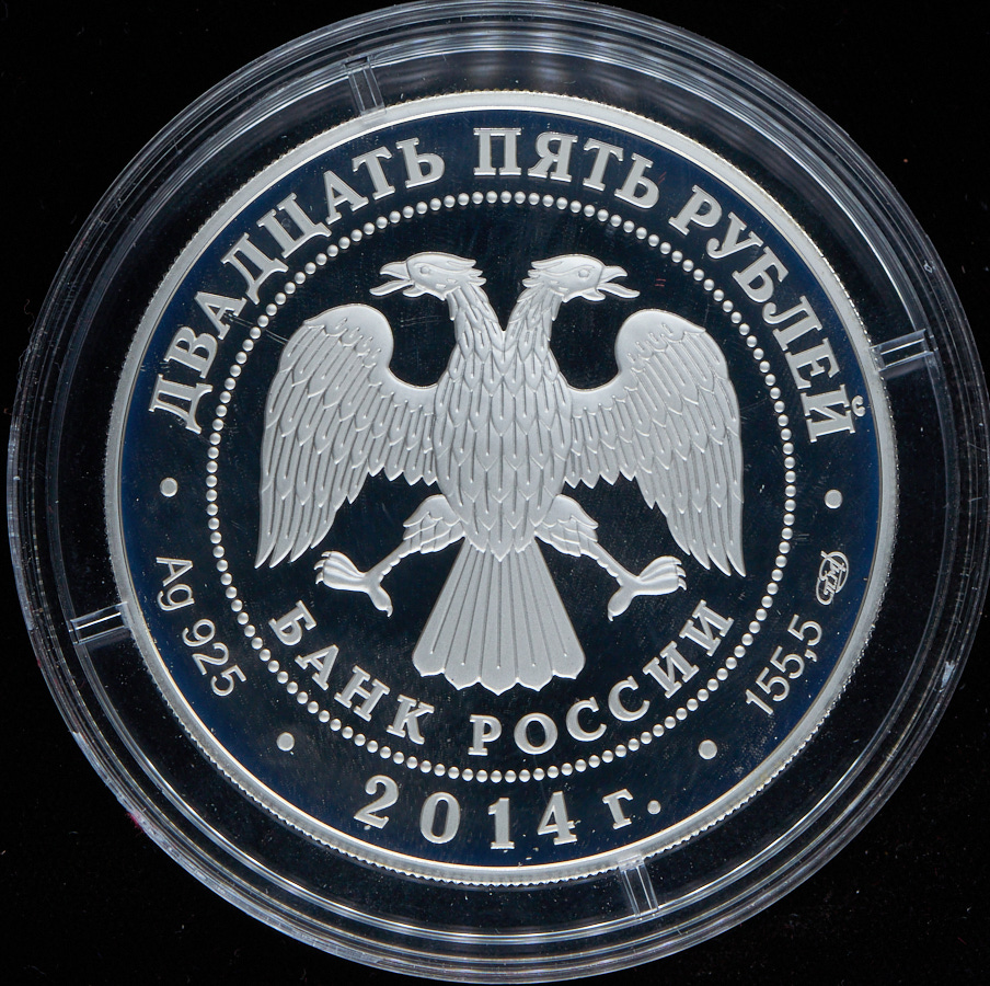 25 рублей 2014 "40-летие начала строительства Байкало-Амурской магистрали" СПМД