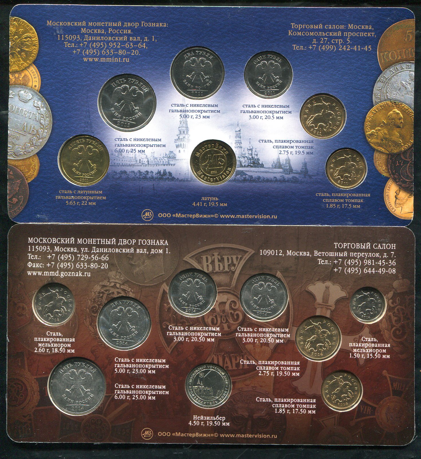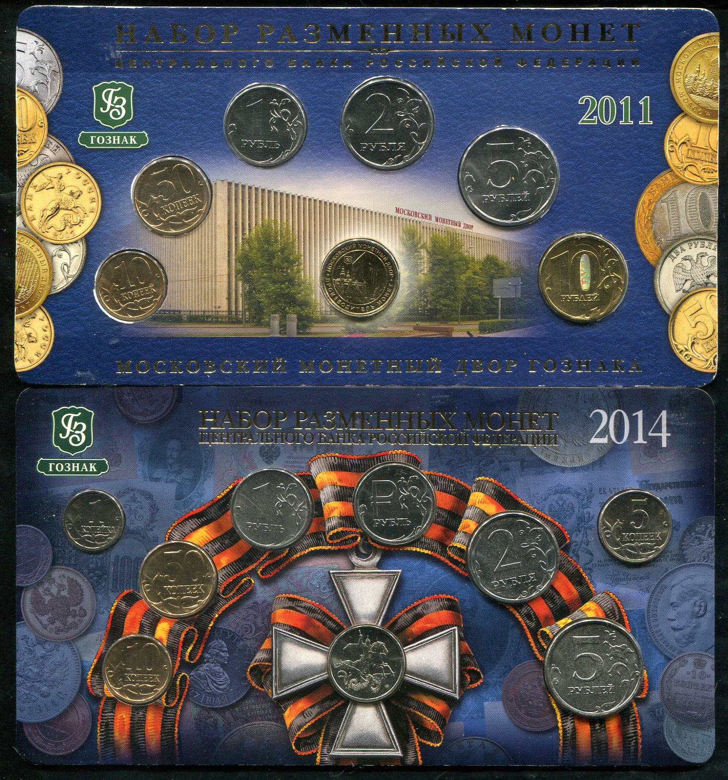 Набор из 2 годовых наборов РФ 2011, 2014 (в п/у) ММД