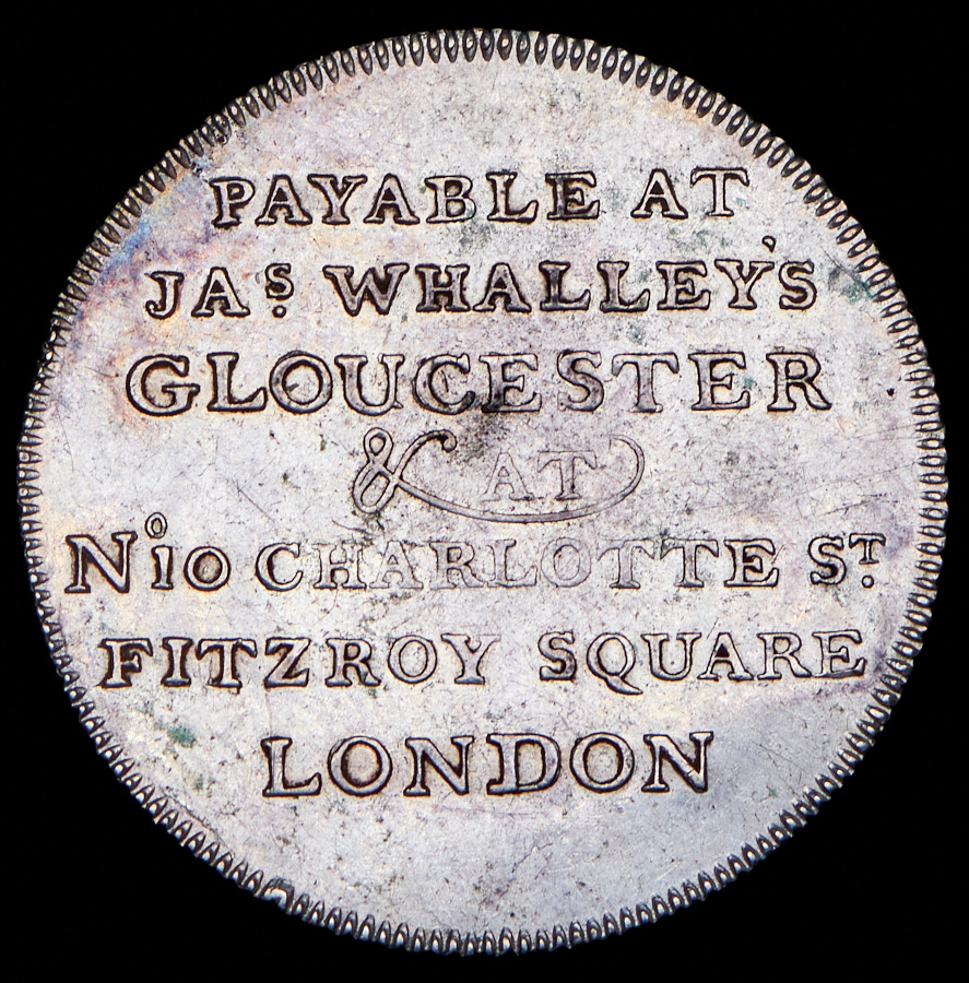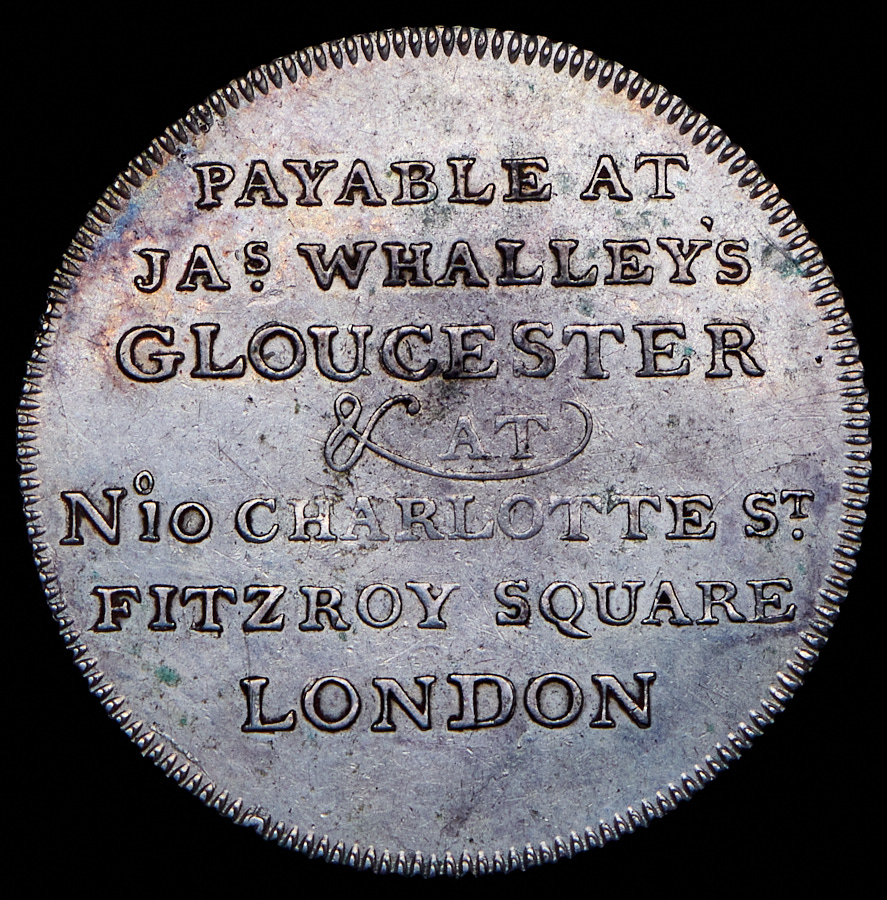 "PAYABLE AT J.A.'s WHALLEY'S GLOUCESTER & AT No. 10 CHARLOTTE ST. FITZROY SQUARE LONDON"