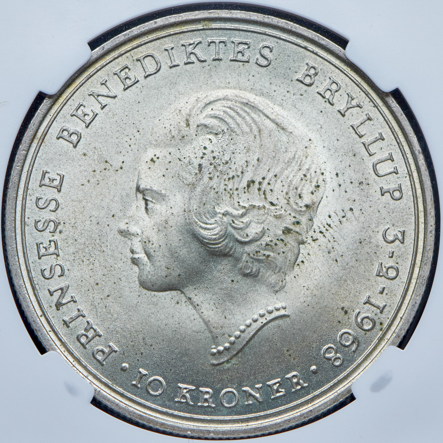 10 крон 1968 "Свадьба принцессы Бенедикты" (Дания) (в слабе)