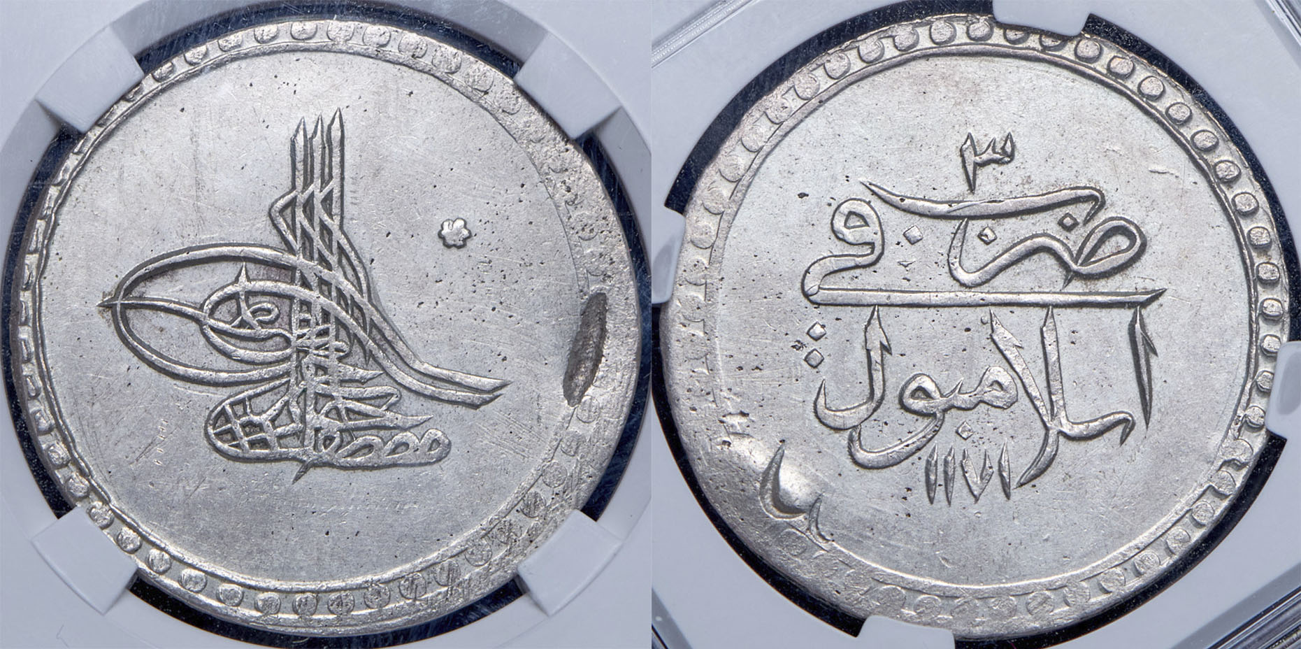 Набор из 2 сер. монет 1 и 2 пиастра 1757, 1789 (Османская империя) (в слабах)