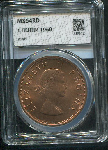1 пенни 1960 (ЮАР) (в слабе)