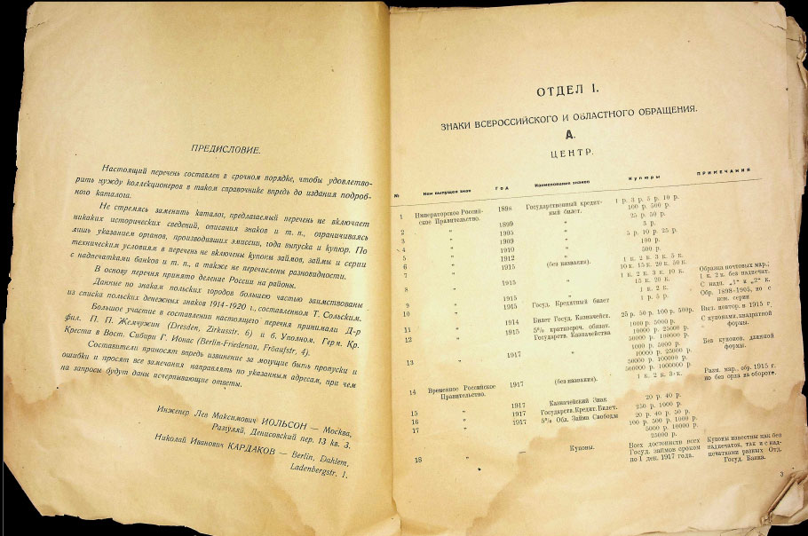 Книга Иольсон, Кардаков "Перечень денежных знаков выпущенных и курсировавших на территории Б. Российской империи в годы войны и революции (1914-1923)" 1923
