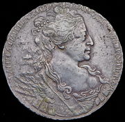 Т.н. "Царственный портрет". Кадашевский монетный двор. Большая голова, корона разделяет надпись, двойная складка над корсажем.