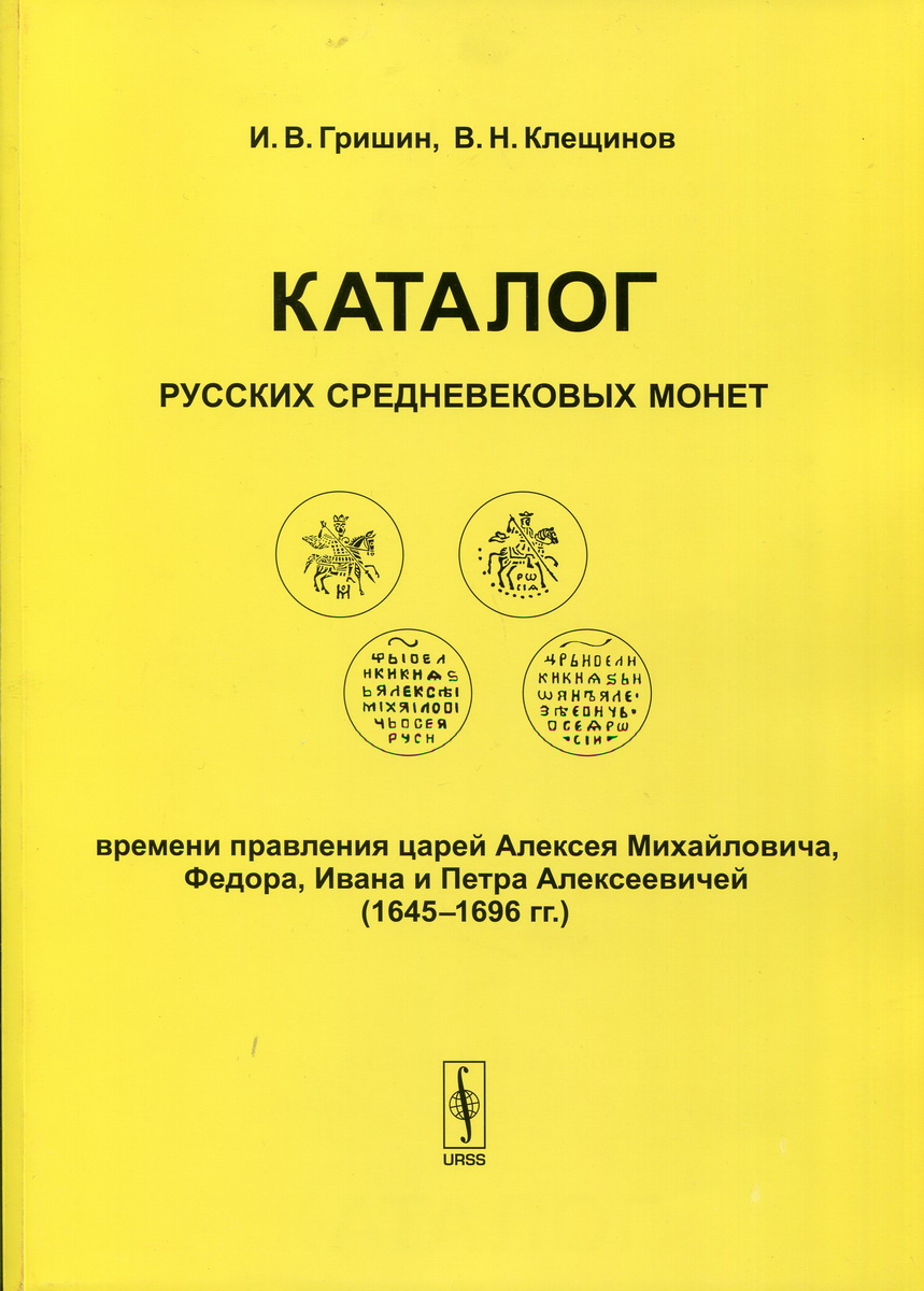 Книга Гришин И.В., Клещинов В.Н. "Каталог русских средневековых монет времени правления царей Алексея Михайловича, Федора, Ивана и Петра Алексеевичей (1645-1696 гг.)" 2007