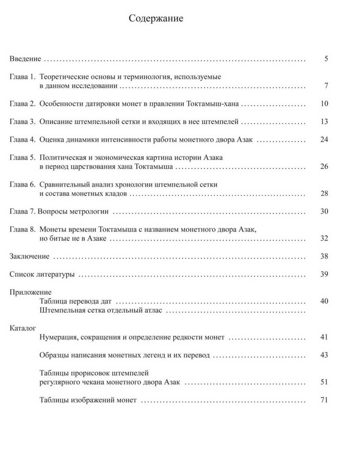 Настоящее исследование посвящено работе монетного двора Азак (ныне - Азов) в период правления золотоордынского хана Токтамыша. В результате изучения массива из порядка 8000 монет был составлен каталог монет Азака за период с 782 г.х. / 1380 г. по 797 г.х. / 1395 г. Построена сетка штемпельных связей для всей известной эмиссии монетного двора Азака, созданы точные компьютерные прорисовки всех выявленных штемпелей (121 штемпель лицевой стороны и 210 штемпелей оборотной стороны; всего каталогизировано 450 монет). Выявлены монеты с указанием этого же места чеканки - «Азак», но чеканенные на других монетных дворах. Па основе комплексного изучения продукции монетного двора Азака было установлено время чеканки первых вы¬пусков монет рассматриваемого периода, прослежено продолжение эмиссии в последующие годы и ее завершение, связанное с разграблением города войсками Тамерлана. Рассмотрены вопросы динамики активности работы двора в различные периоды, а также обсужден ряд других аспектов, присущих нумизматическому исследованию. Издание адресовано нумизматам, историкам-медиевистам, музейным работникам и коллекционерам ордынских монет.