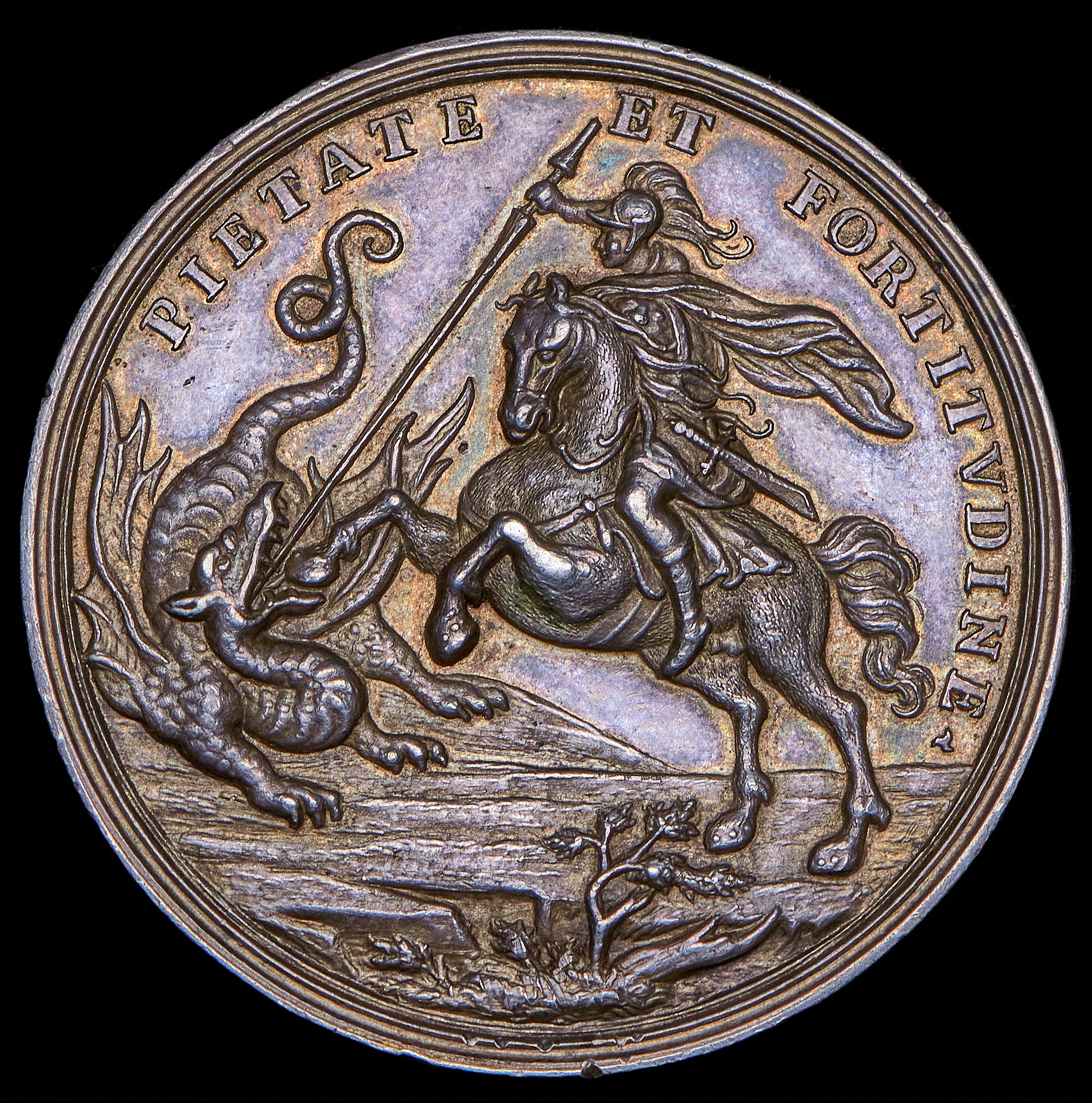 Гравер Г. Гауч. В обрезе рукава инициал "Н". Легенда реверса "PIETATE ET FORTITVDINE" (Благочестие и храбрость).