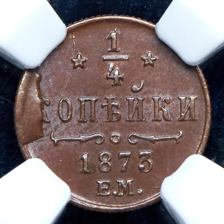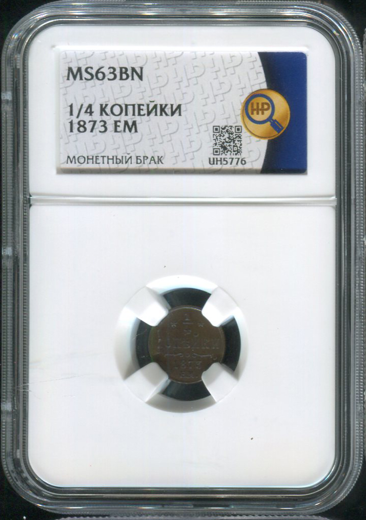 1/4 копейки 1873 (в слабе) ЕМ