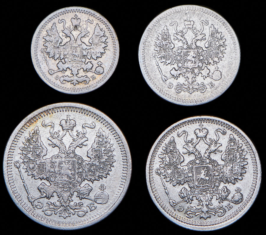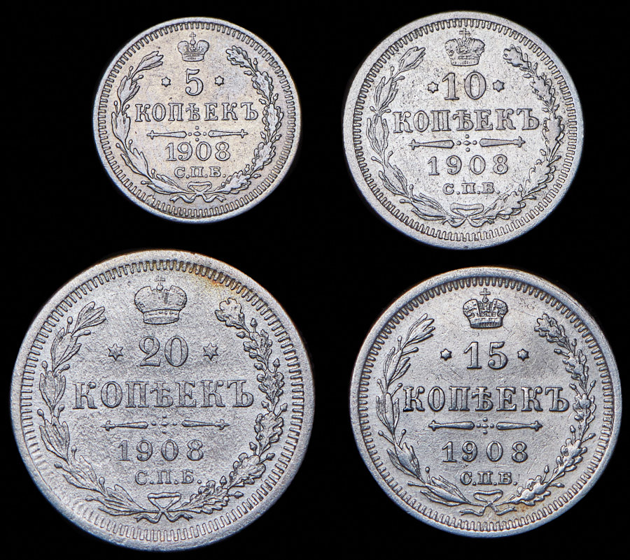 Набор из 4 сер. монет 5, 10, 15, 20 копеек 1908 СПБ-ЭБ