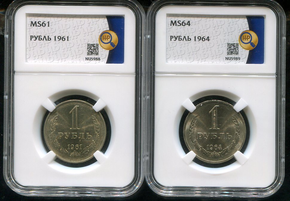 Рубль 1961 (MS 61), Рубль 1964 (MS 64).В слабах ННР.