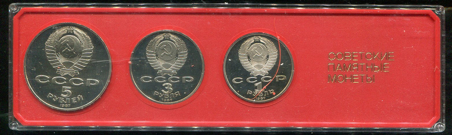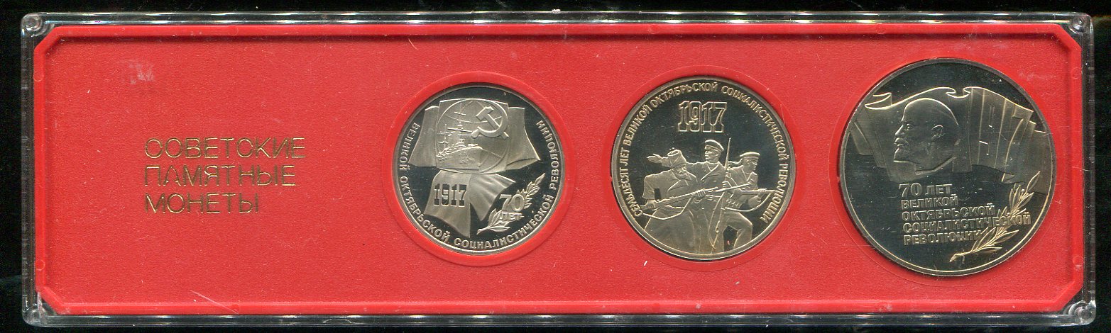 Набор из 3 памятных монет "70 лет Революции" 1987 (в п/у)