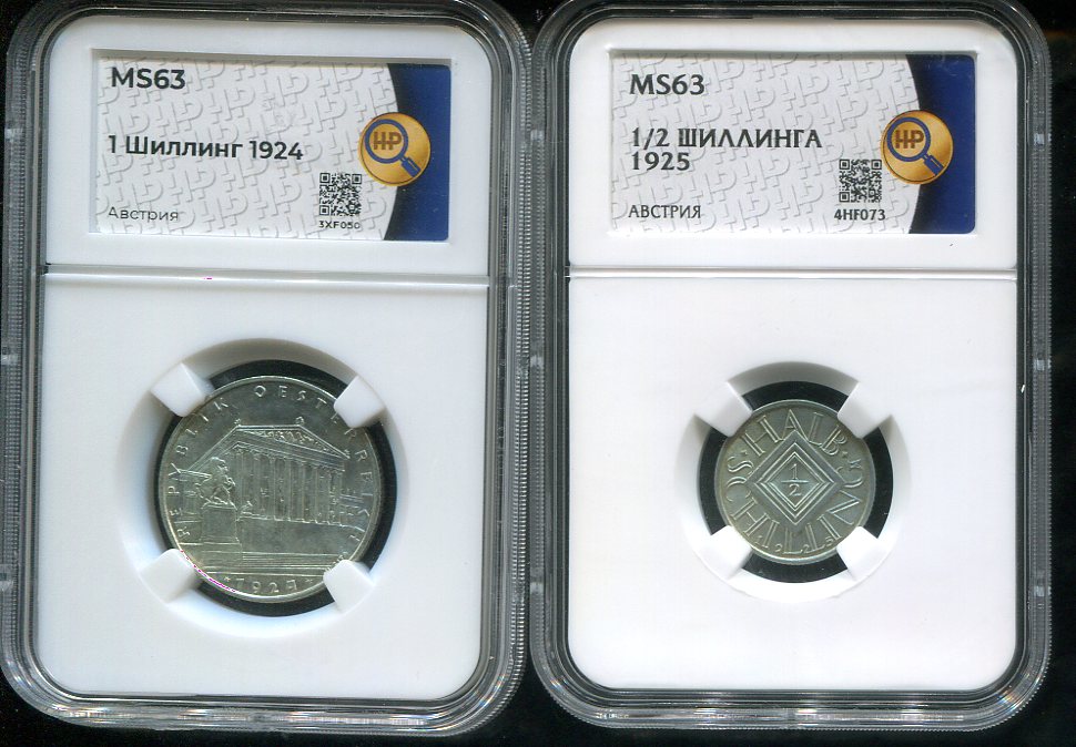1 шиллинг 1924, 1/2 шиллинга 1925.В слабах ННР.