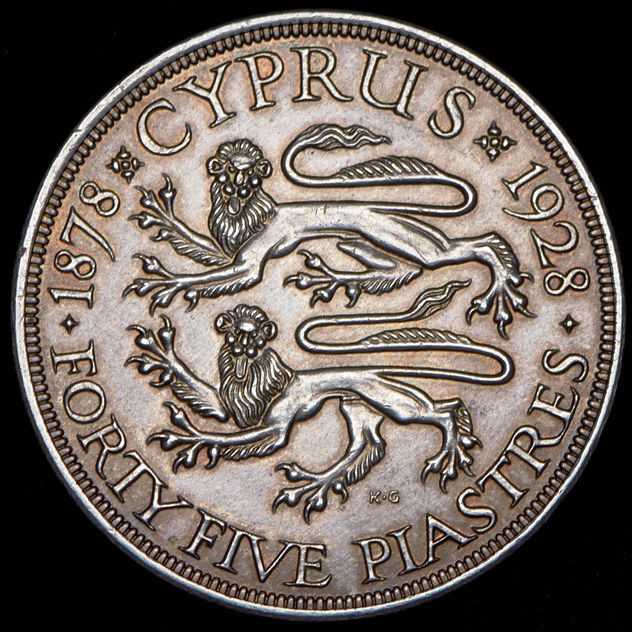 45 пиастров 1928 "50 лет английскому Кипру" (Кипр)