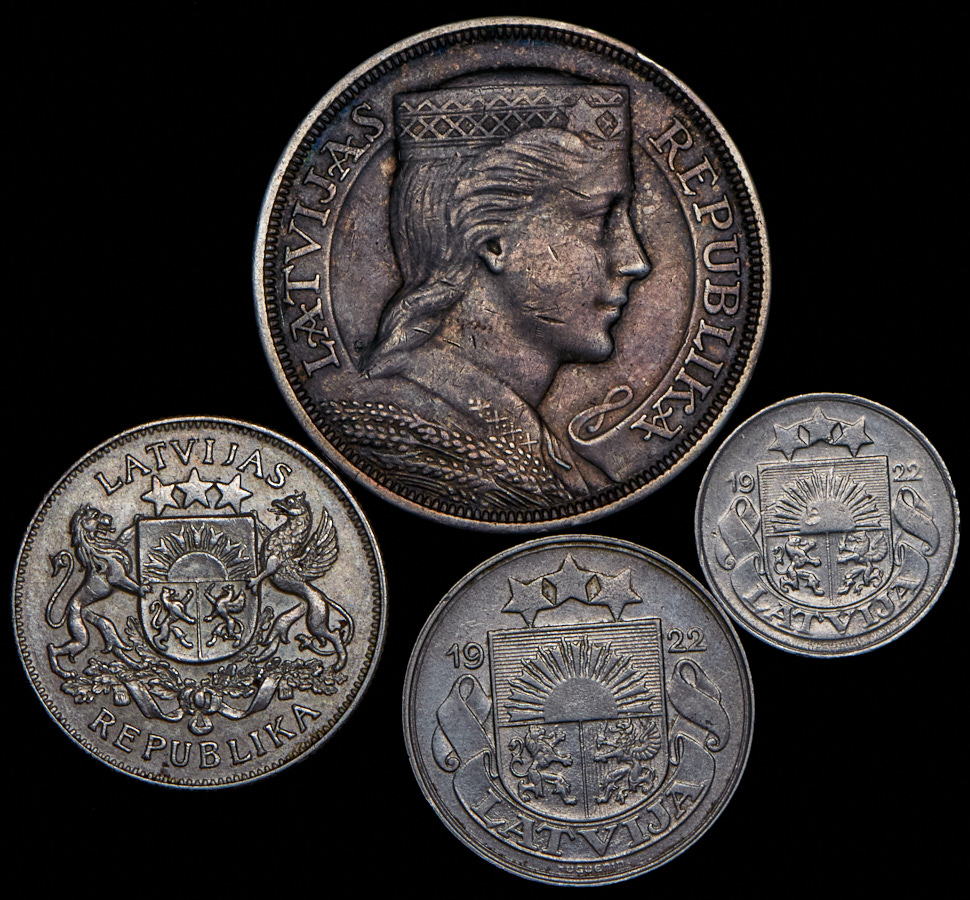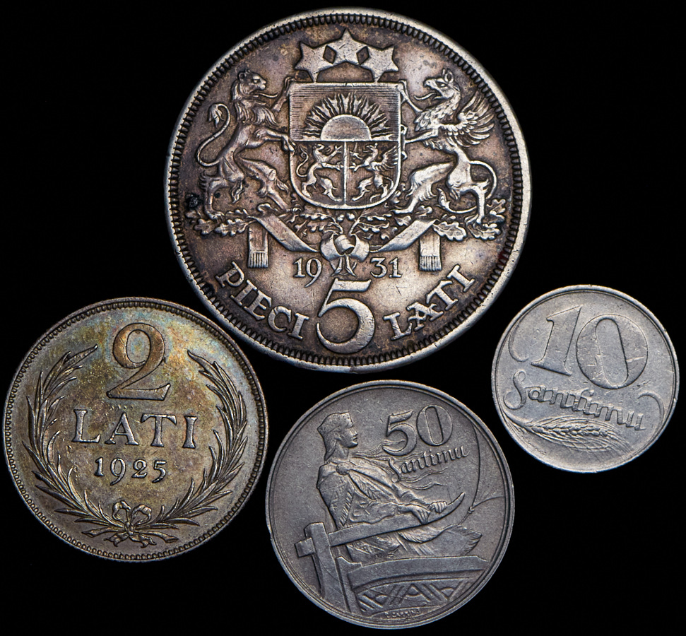 XF-AU. 5 лат 1931, 2 лата 1925, 50 сантимов 1922, 10 сантимов1922.