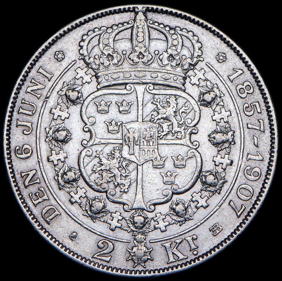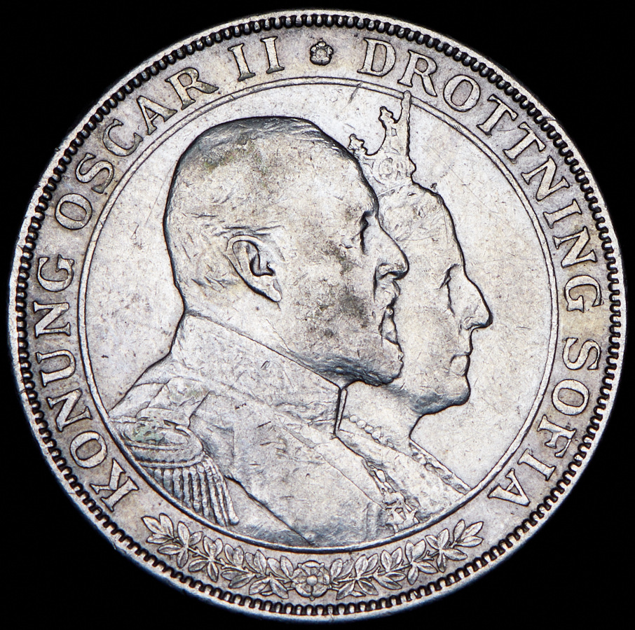 2 кроны 1907 "50 лет свадьбе Короля Оскара II и Леди Софии" (Швеция)