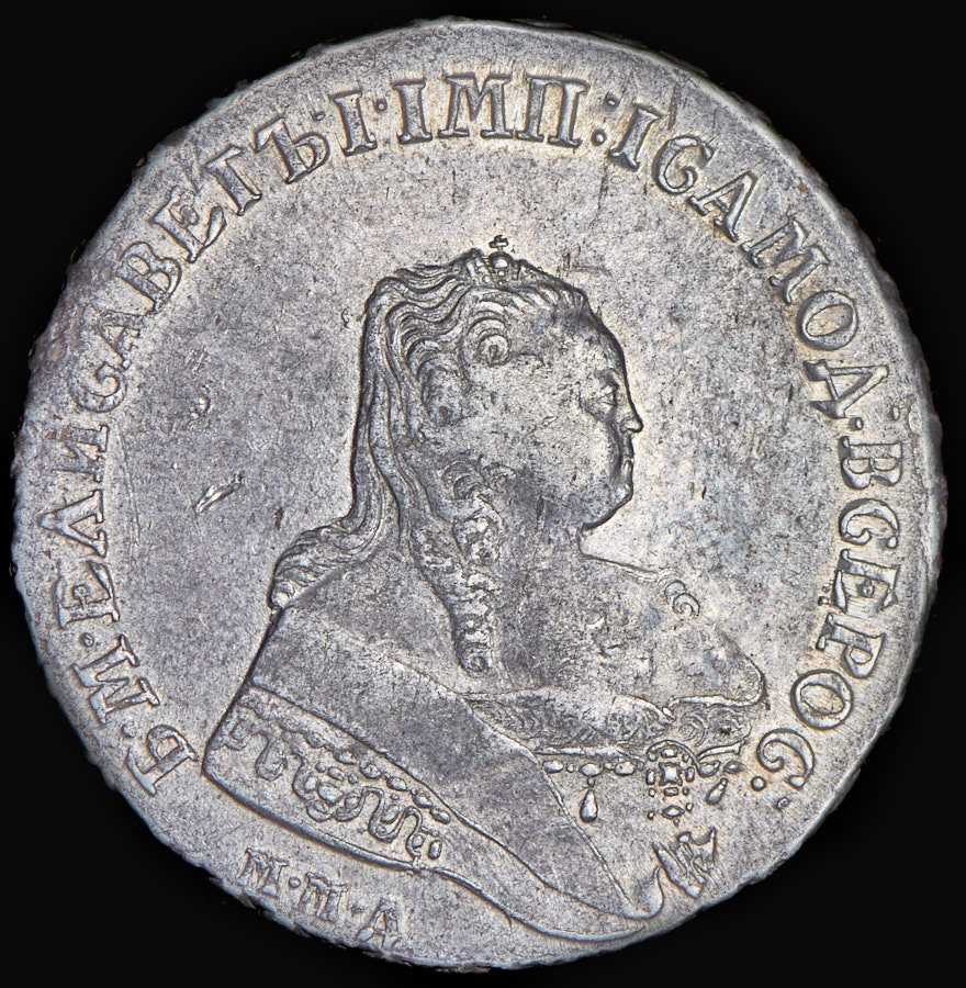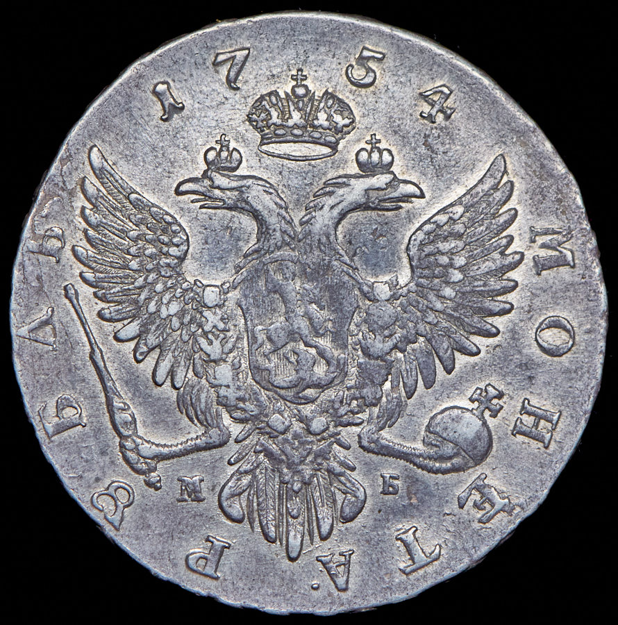 Портрет образца 1745-54 гг., с широкой орденской лентой – более редкая разновидность.