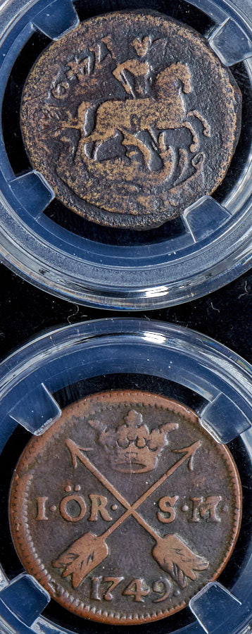2) 1 эре 1749 SM Швеция (XF 45 BN).