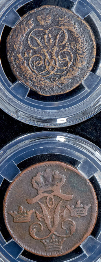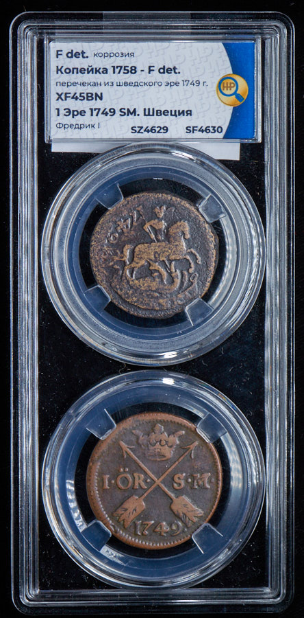 1) Копейка 1758 - перечекан из шведского эре 1749 г. (F Details),