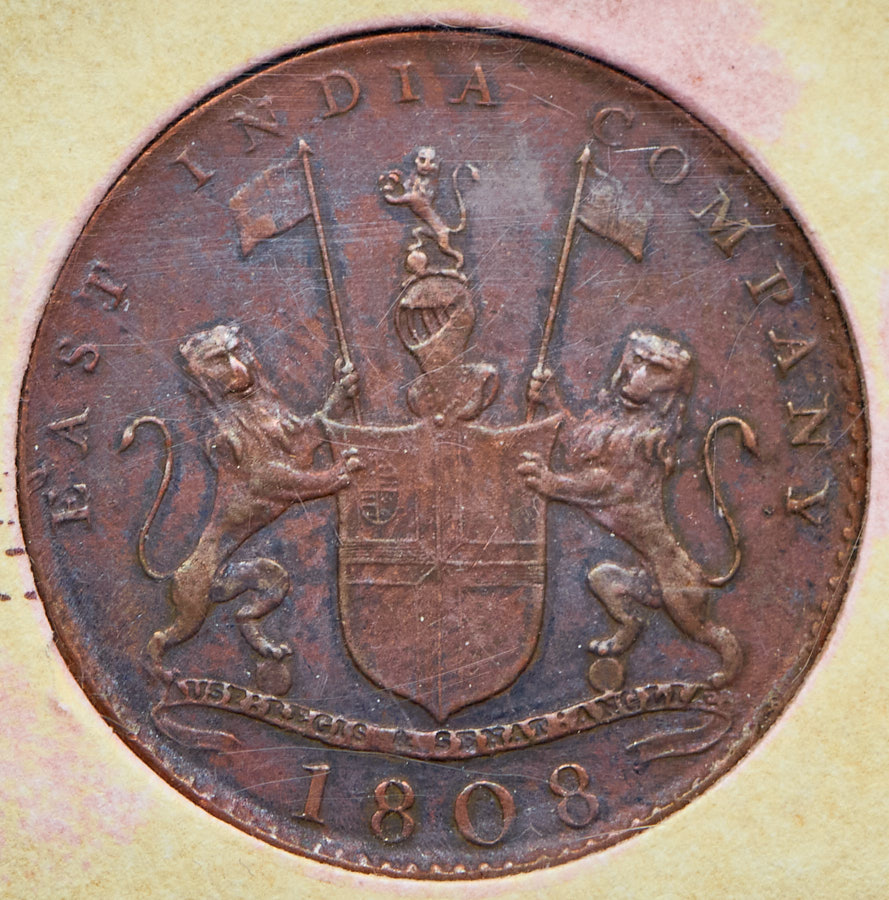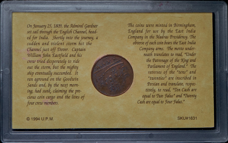 KM# 320.Мадрас (Пагода) (1790 - 1830).В памятной упаковке. Следы чистки.