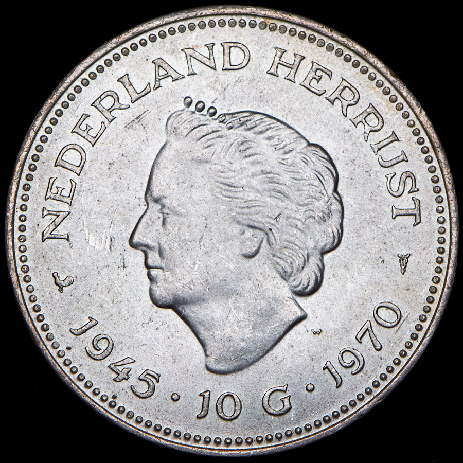 10 гульденов 1970 "25 лет освобождения Нидерландов от фашистских захватчиков" (Нидерланды)
