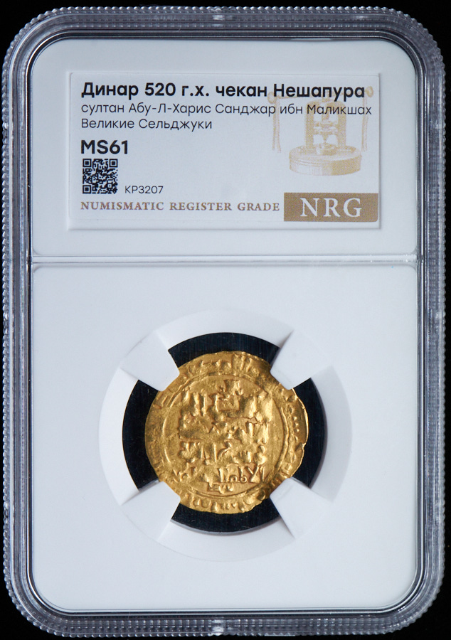 520 г.х. (1126 г.) чекан Нешапура. Султан Абу-Л-Харис Санджар Маликшах.В слабе NRG.