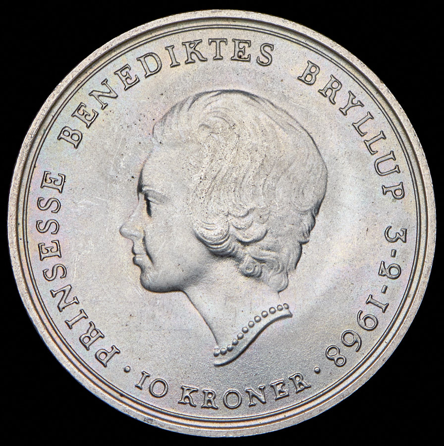 10 крон 1968 "Свадьба принцессы Бенедикты" (Дания)