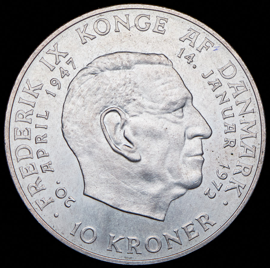 10 крон 1972 "Смерть Фредерика IX и вступление на престол Маргрете II" (Дания)