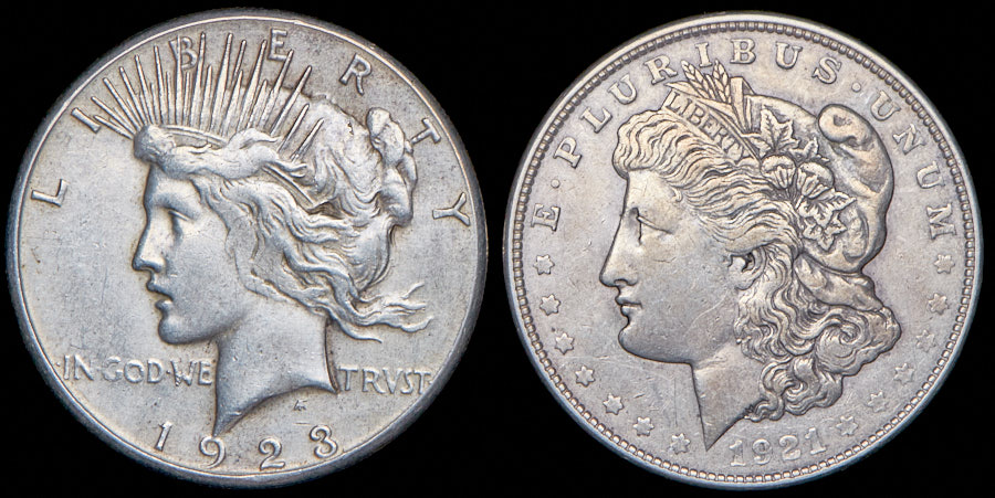 В набор вошли: Доллар 1921 (D).Доллар 1923 (S).