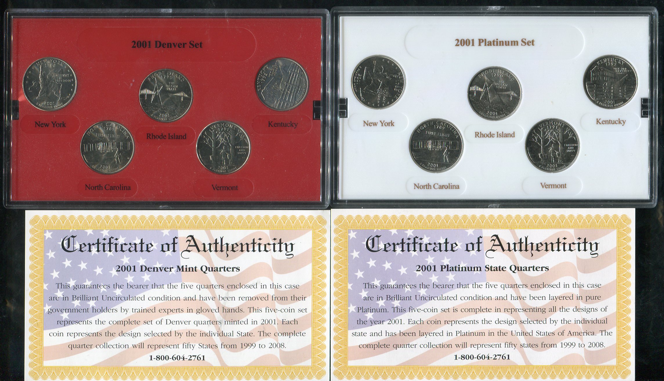 2001 Gold Edition. 2001 Platinum Edition. 2001 Philadelphia Mint Edition. 2001 Denver Mint Edition.