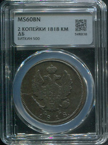 2 копейки 1818 (в слабе) КМ-ДБ