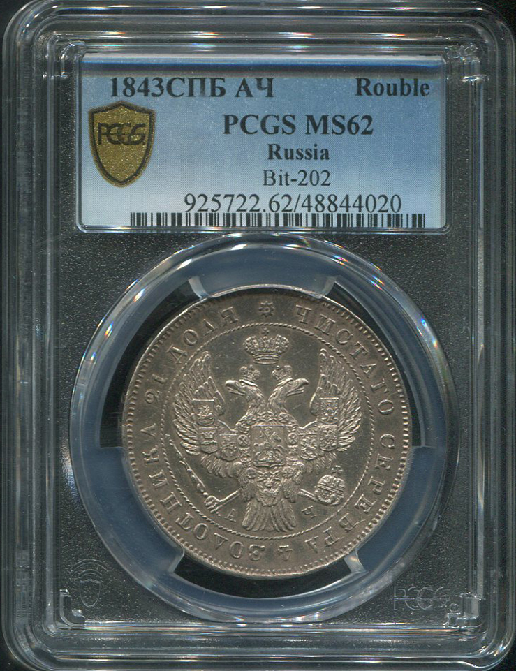 Рубль 1843 (в слабе) СПБ-АЧ