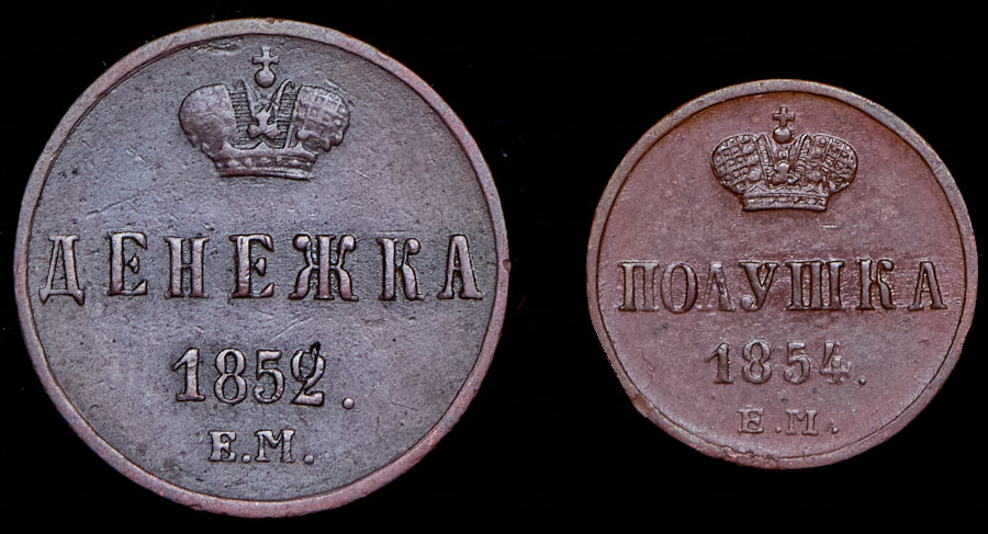 VF-XF. Денежка 1852 ЕМ, Полушка 1854 ЕМ.