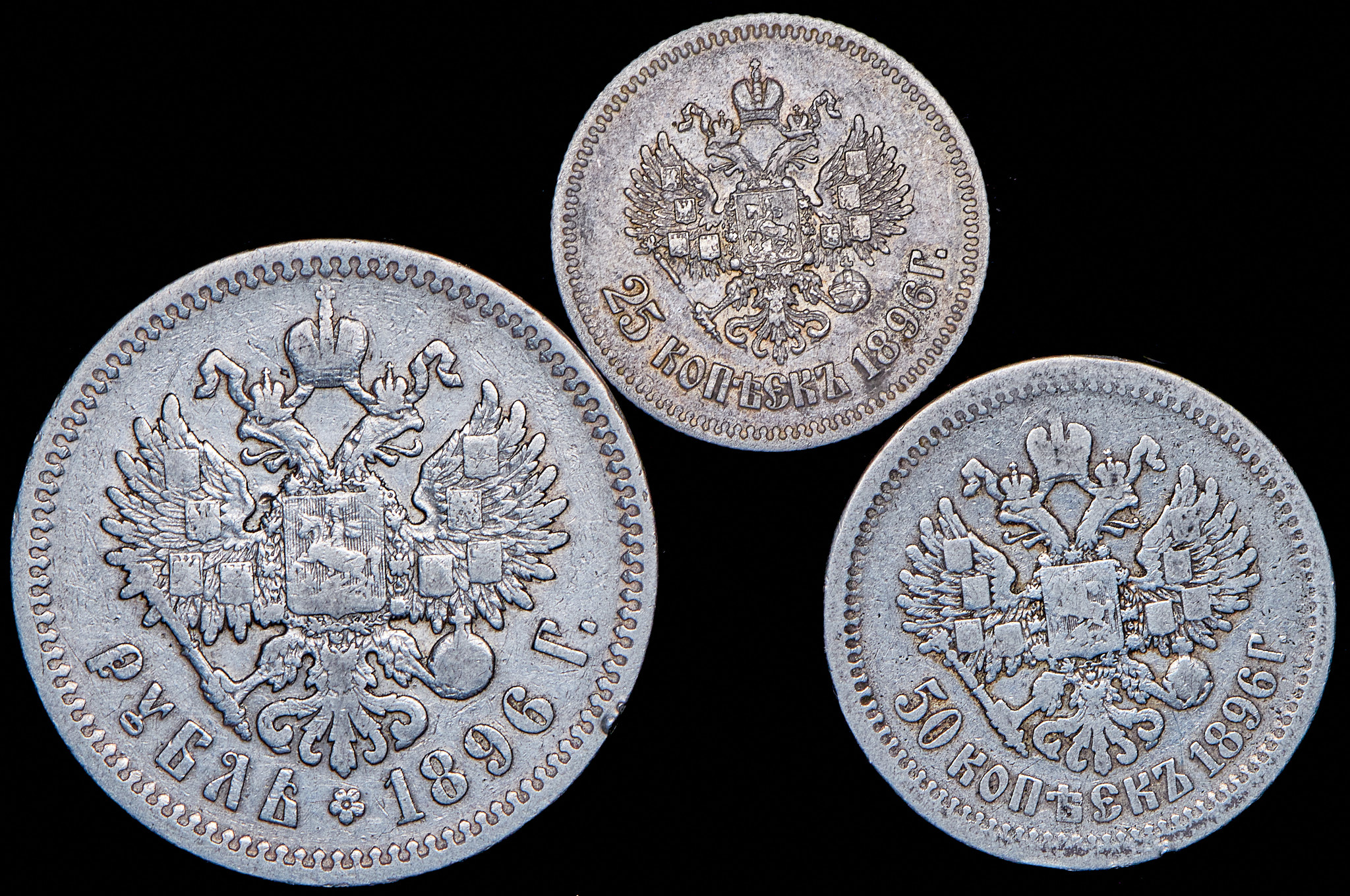 Набор из 3 сер. монет 1896 (АГ)
