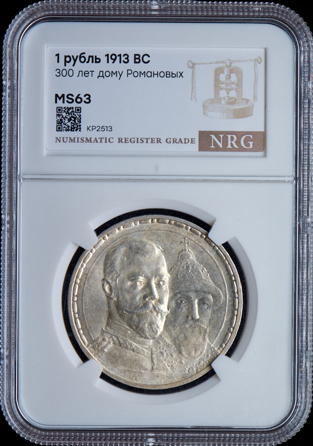 Рубль 1913 "300-летие царствования Дома Романовых" (в слабе) (ВС)