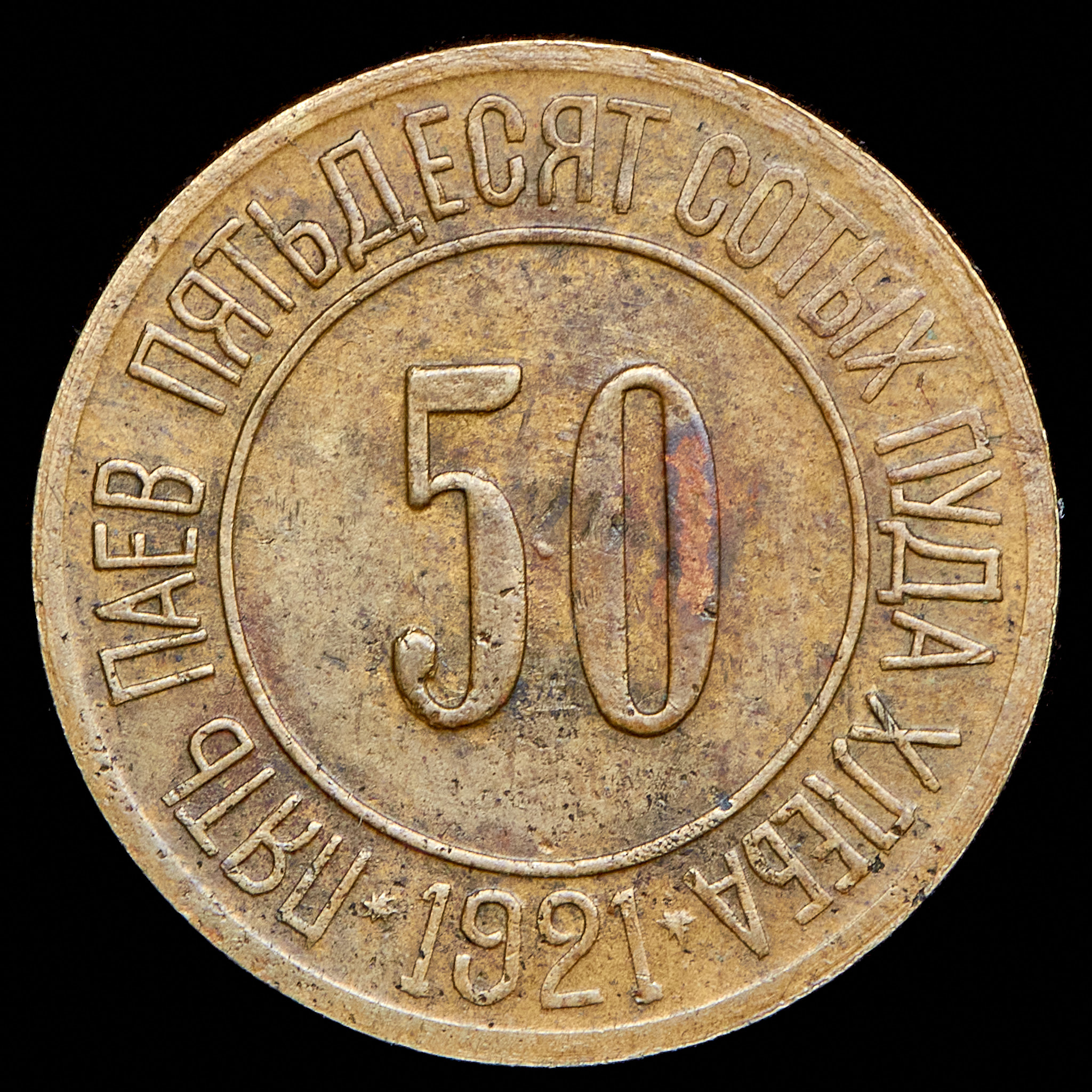Расчетный знак "0,50 пуда хлеба" 1921 (Разум и совесть)