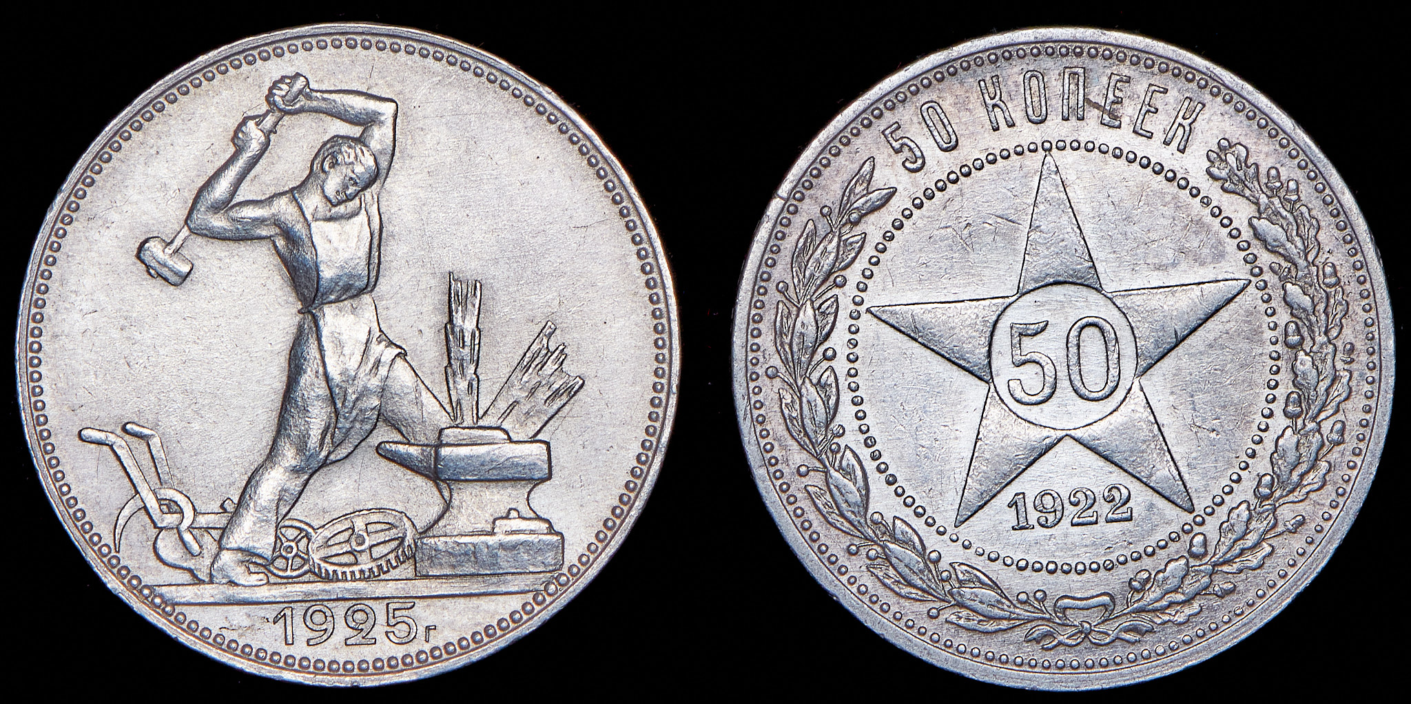 XF - AU. 50 копеек 1922, Полтинник 1925.