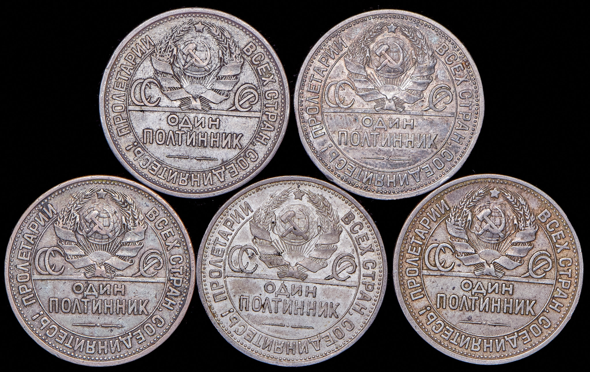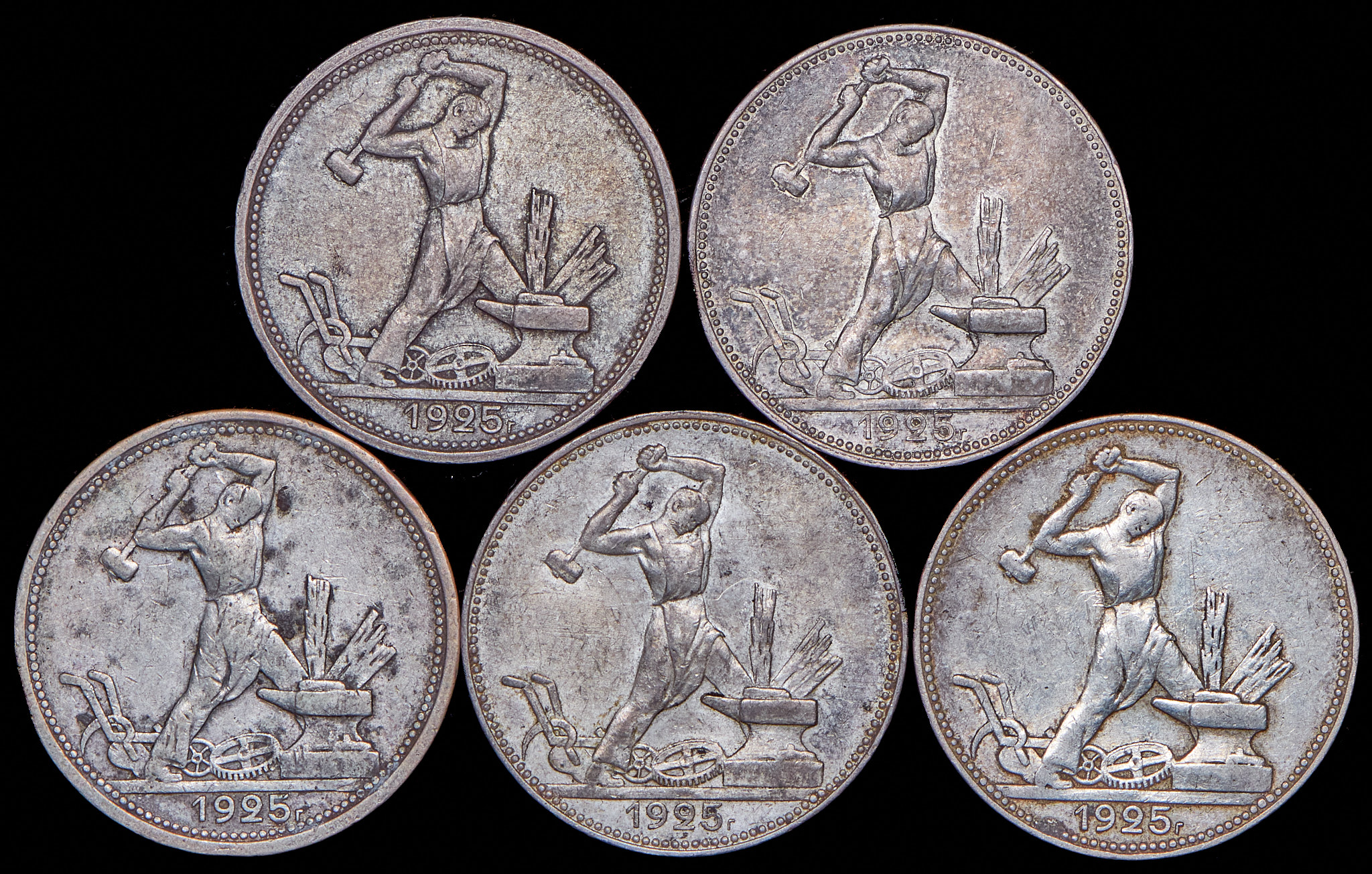 Набор из 5 сер. монет Полтинник 1925 (СССР) (ПЛ)