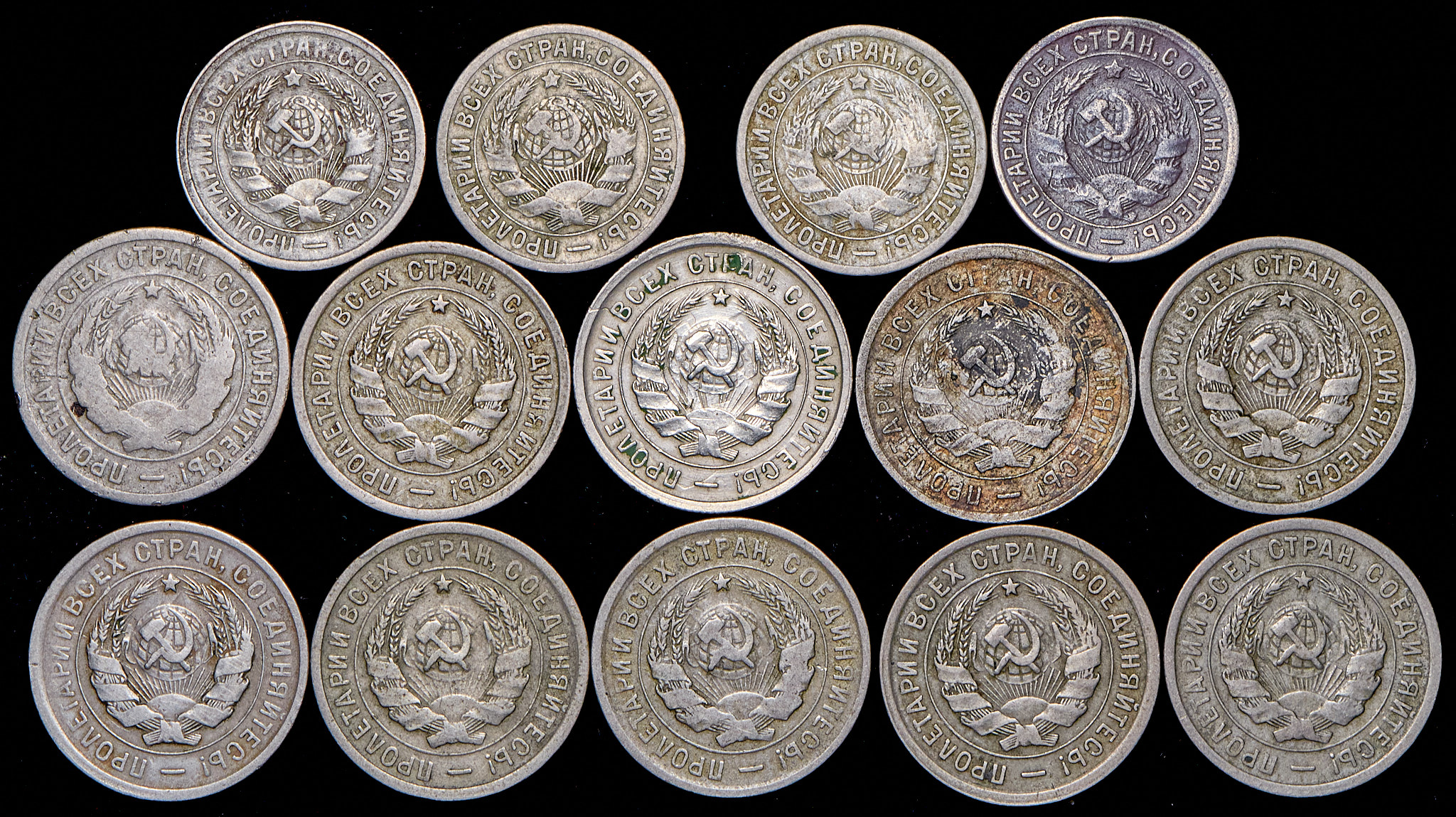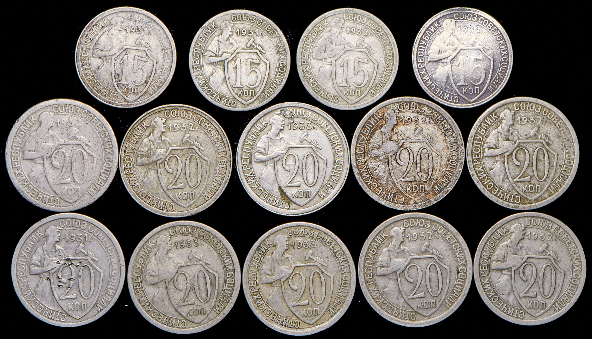 Набор из 14 монет 15, 20 копеек 1931-1933