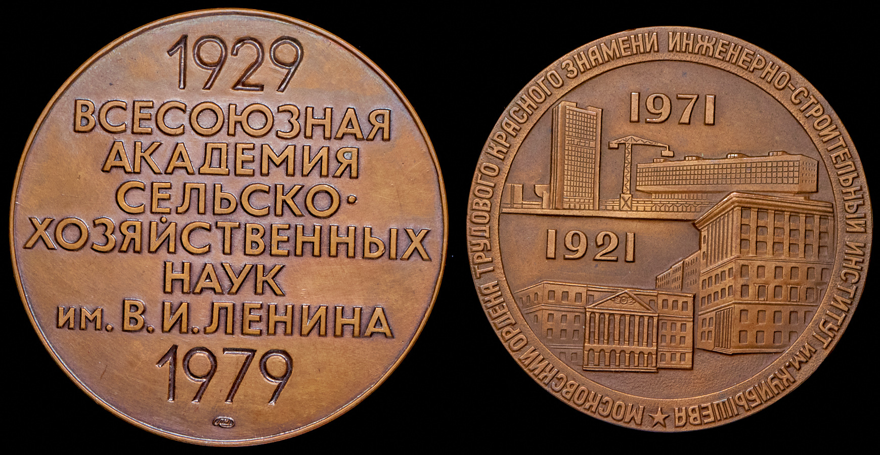 2. Медаль в память 50-летия Всесоюзной академии сельскохозяйственных наук им. В.И. Ленина (ВАСХНИЛ). 1979 год.