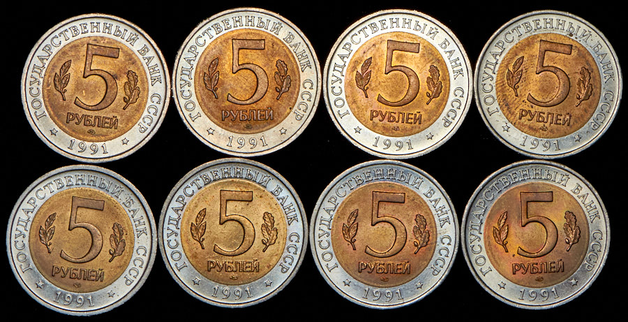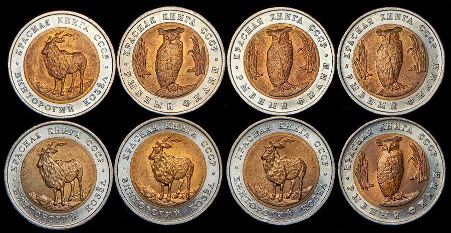 Набор из 8 монет 5 рублей 1991 "Красная книга"