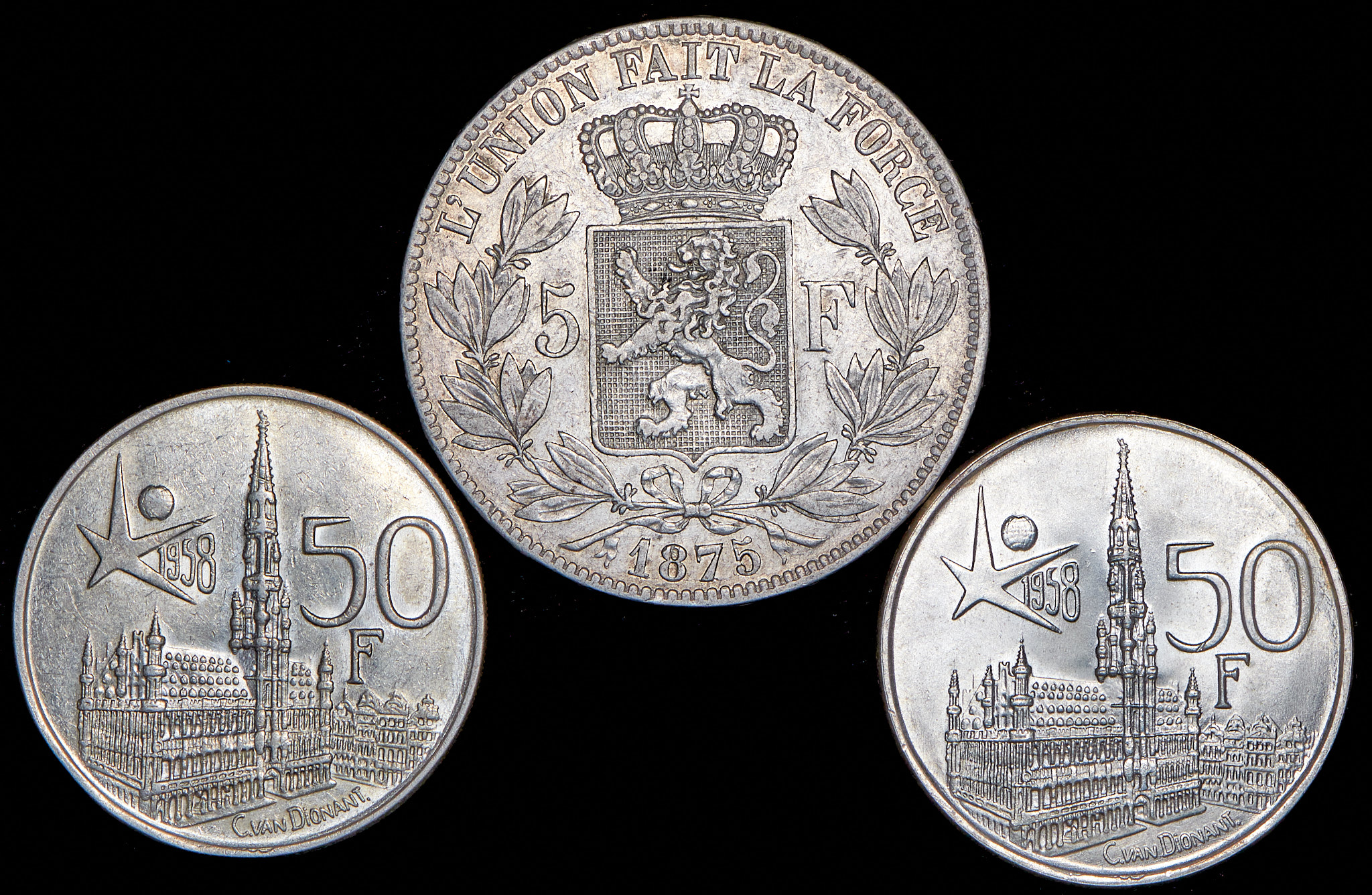 VF-MS. 5 франков 1875, 50 франков 1958 (2 шт.)