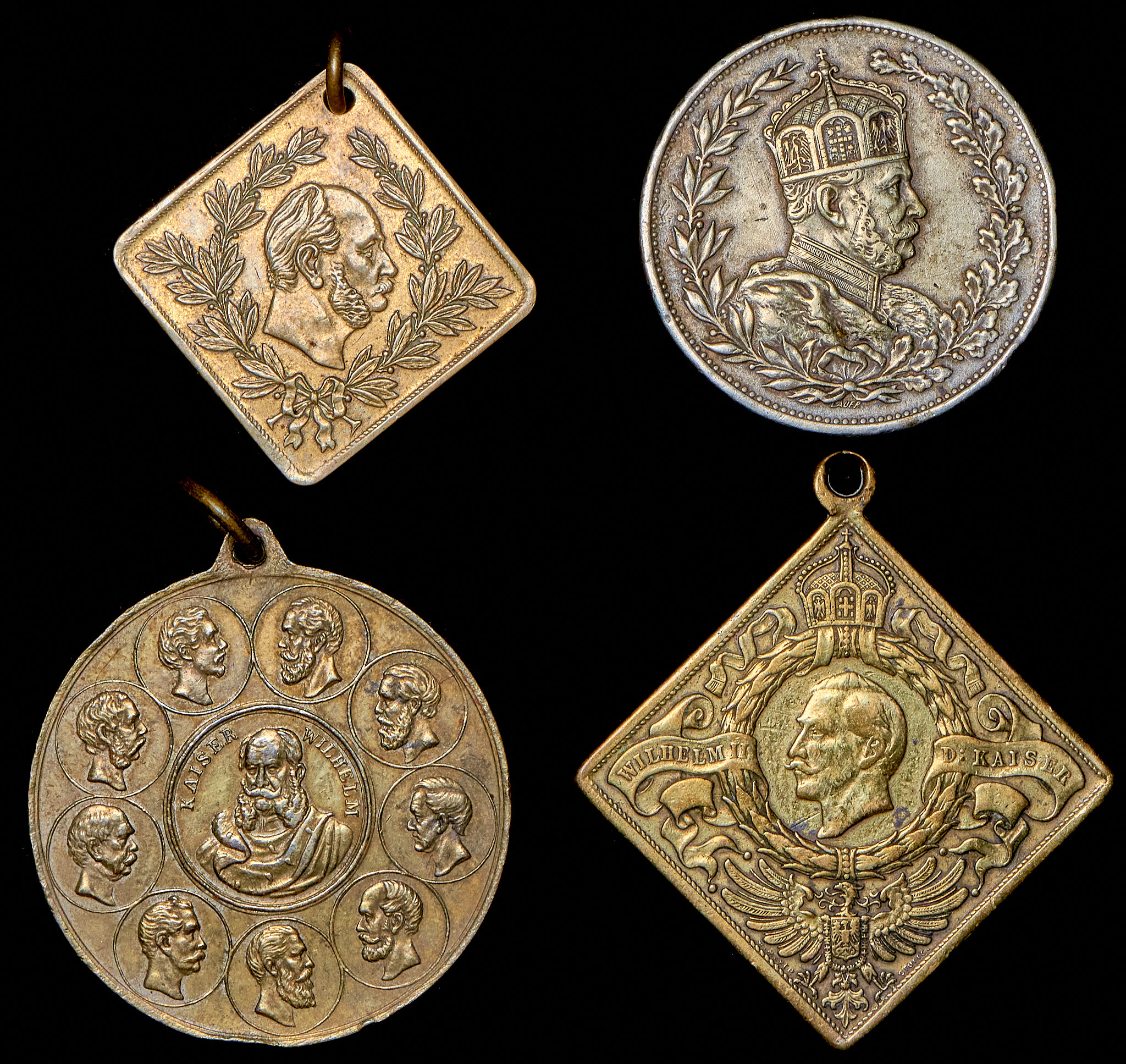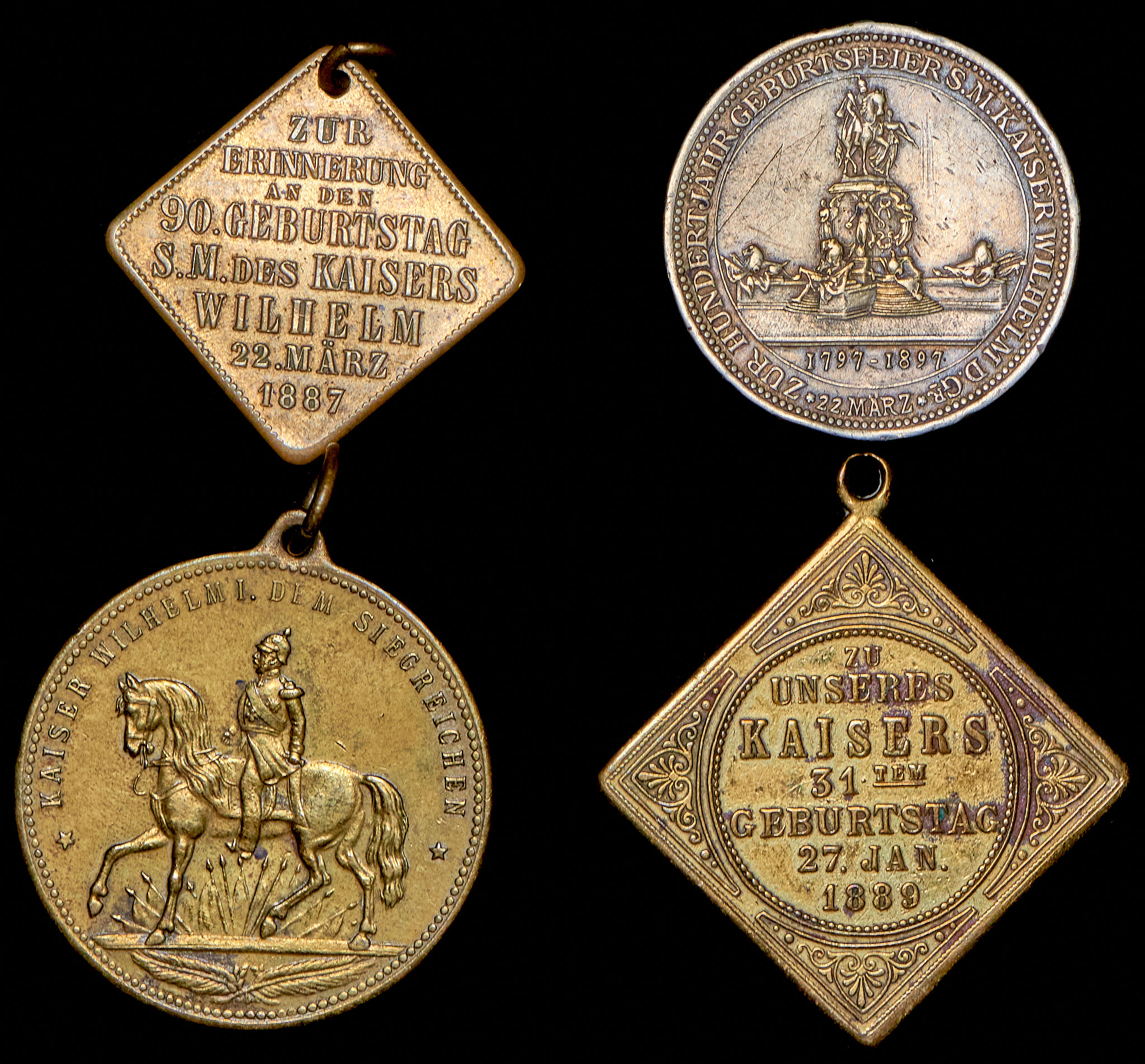 1) Медаль «Празднование дня рождения кайзера Вильгельма II». 1889 г. 30*30 мм.