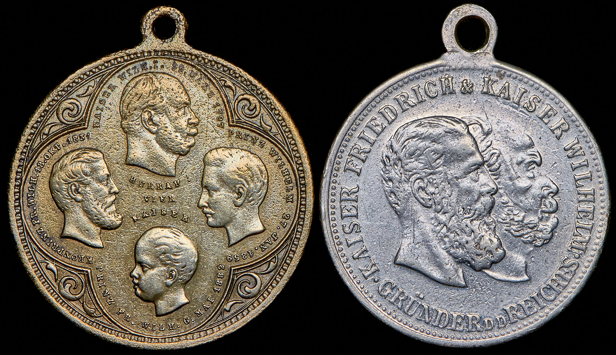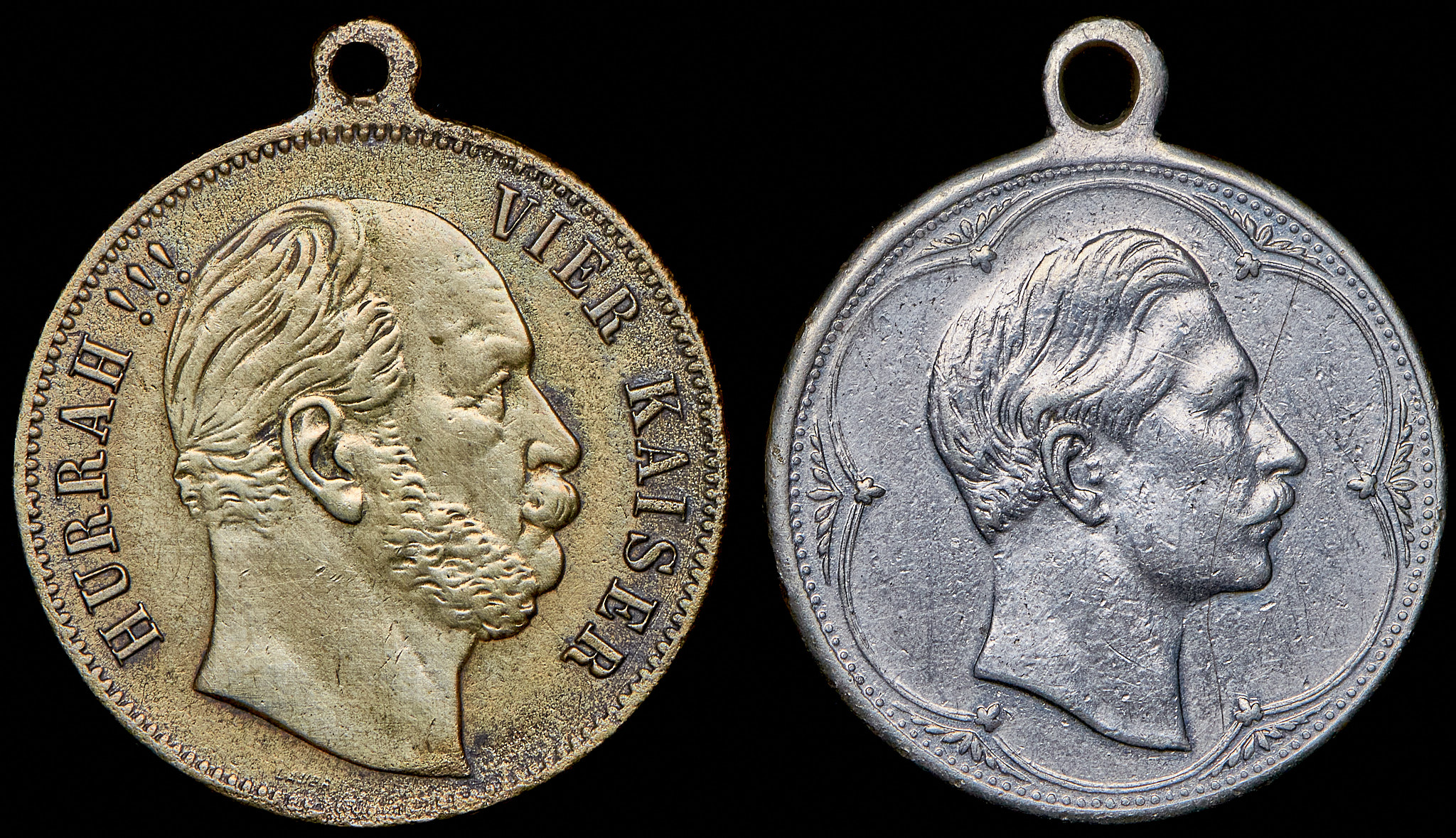 1) Медаль "HURRAH VIER KAISER" "Ура четырем кайзерам". 1861 – 1888 гг. Диаметр: 30 мм.