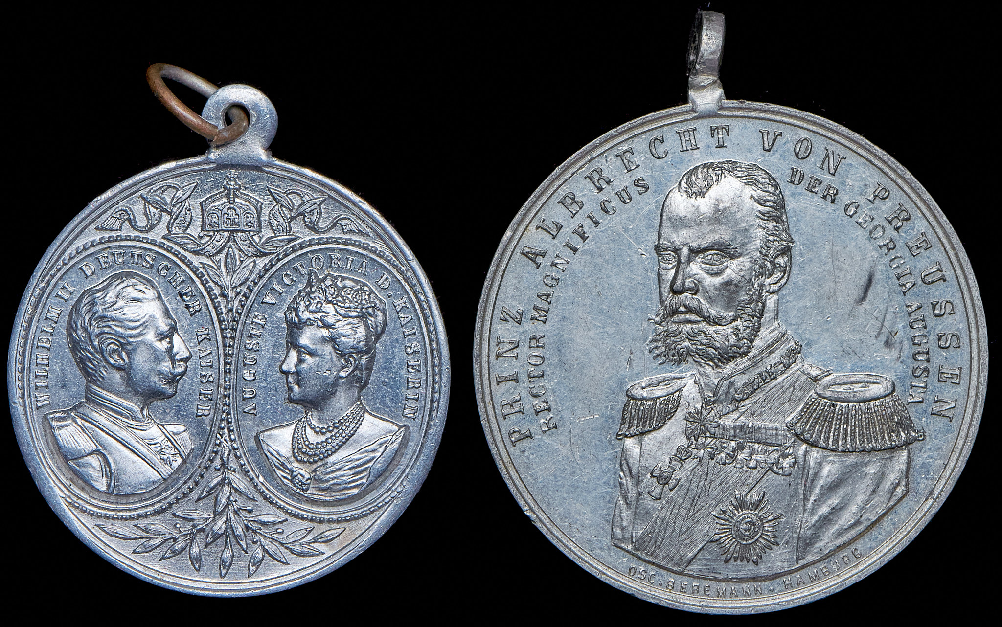2) Медаль в честь 150-летия Гёттингенского университета Джорджии-Аугусты. Принц Альбрехт Прусский на аверсе. 1887 г. Диаметр: 39 мм.