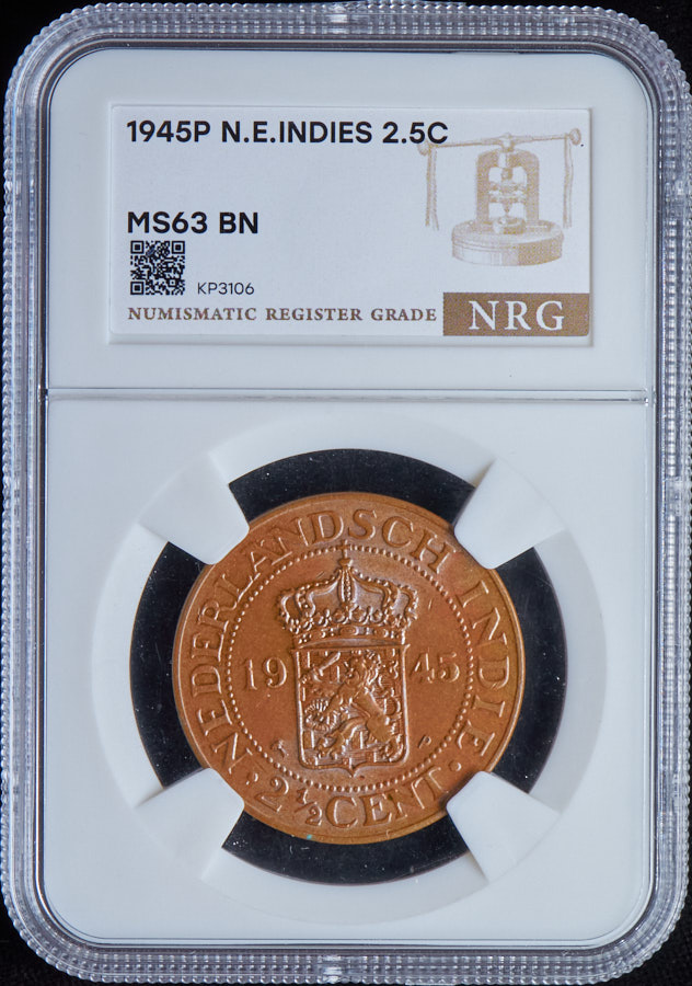 2 1/2 цента 1945 (Нидерландская Индия) (в слабе)